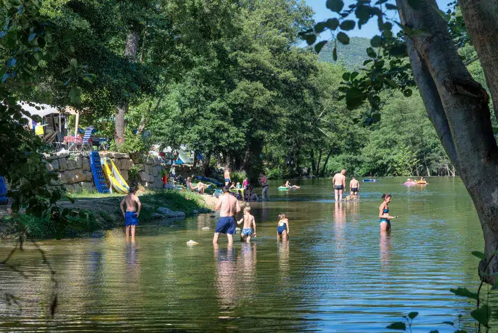 La rivière naturelle qui traverse notre camping est parsemée de petites chutes d’eau et de rochers, parfaits pour les enfants qui souhaitent s’amuser en sautant dans l’eau, toujours sous la surveillance des adultes. Avec ses eaux peu profondes, notre rivière est parfaitement adaptée aux plus jeunes, assurant ainsi leur sécurité tout en leur offrant des moments de plaisir. Bien que peu peuplée de poissons, la rivière est également un lieu idéal pour s’essayer à la pêche, canne à pêche et épuisettes à la main.